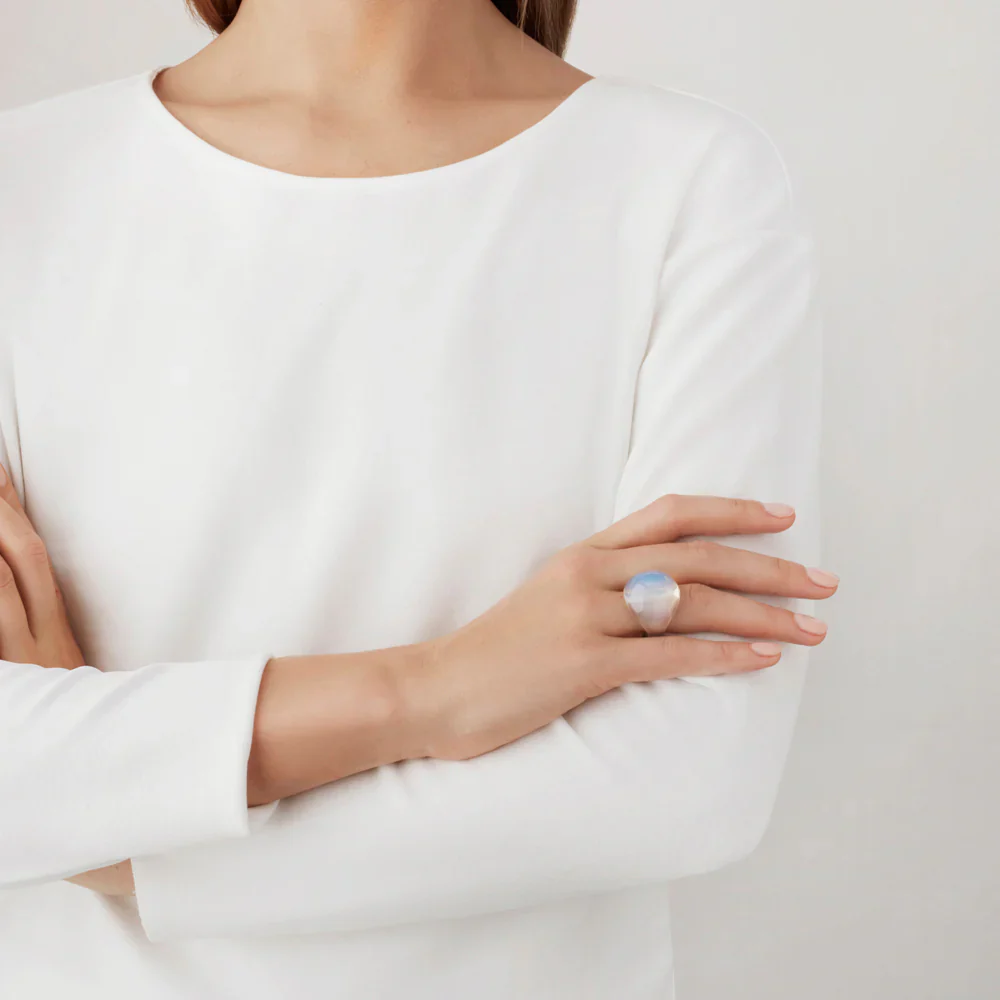 Lalique Cabochon Ring - Opalescent Crystal
