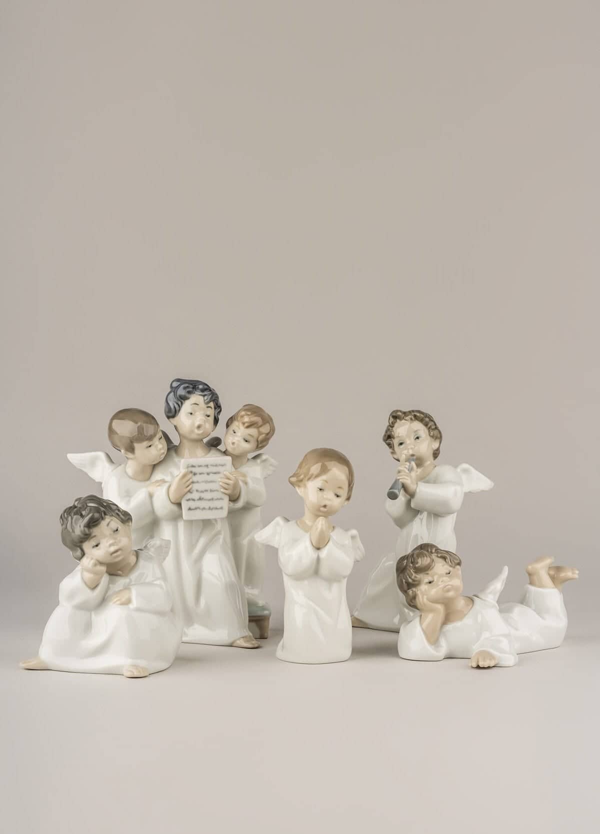 A young angel serenades us with a joyful melody from his flute, easing our troubles and tribulations and lightening our mood. The little angelic musician plays his melody for us and we can almost hear it coming down from heavens. A classic Lladró piece with all the attributes of grace and expressiveness, despite its simplicity.