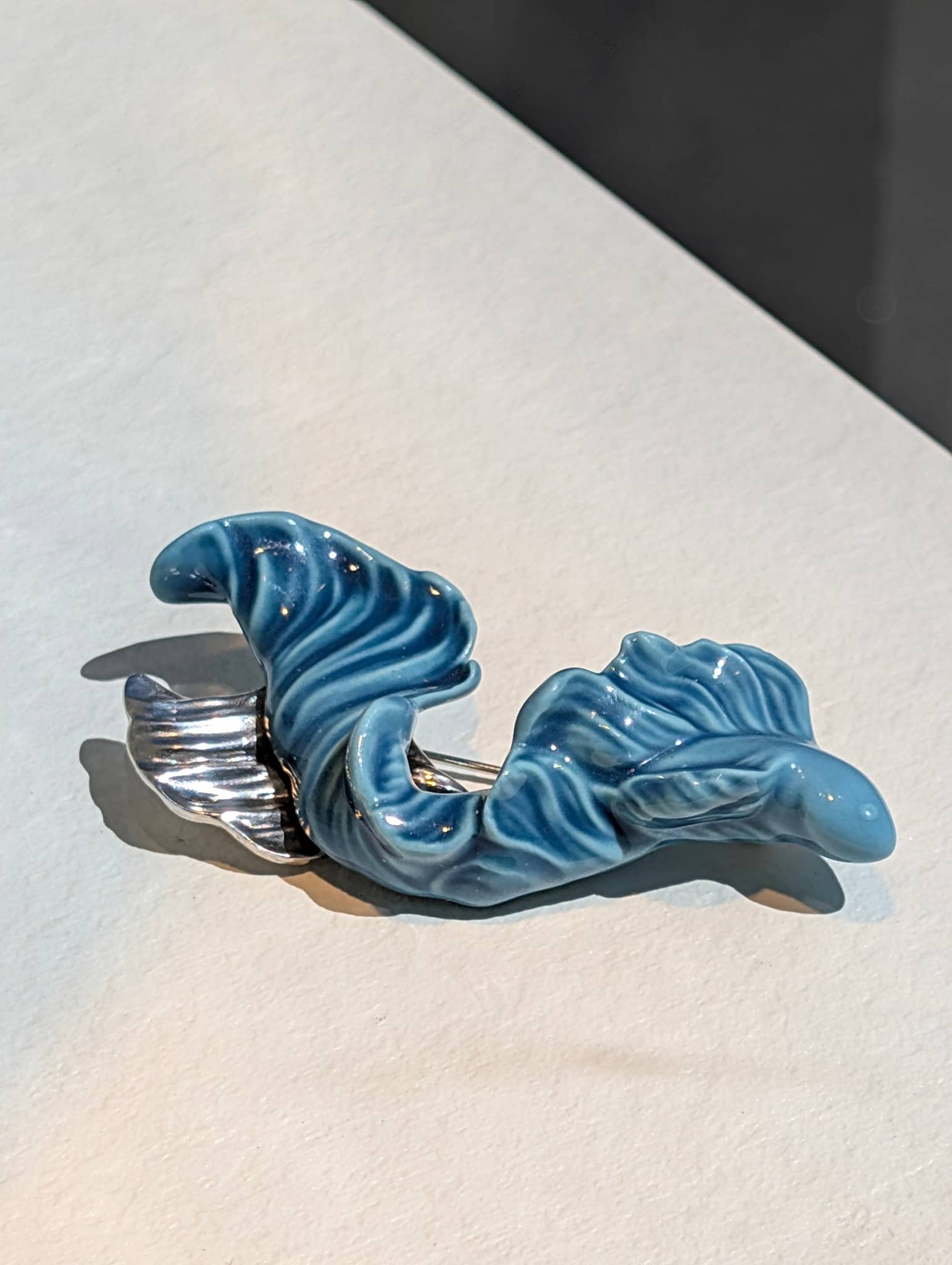 Sterling silver brooch combined with a piece of porcelain deco from the Aquarium Collection inspired by waves. Buy it now at Lladró Sydney, Australia.