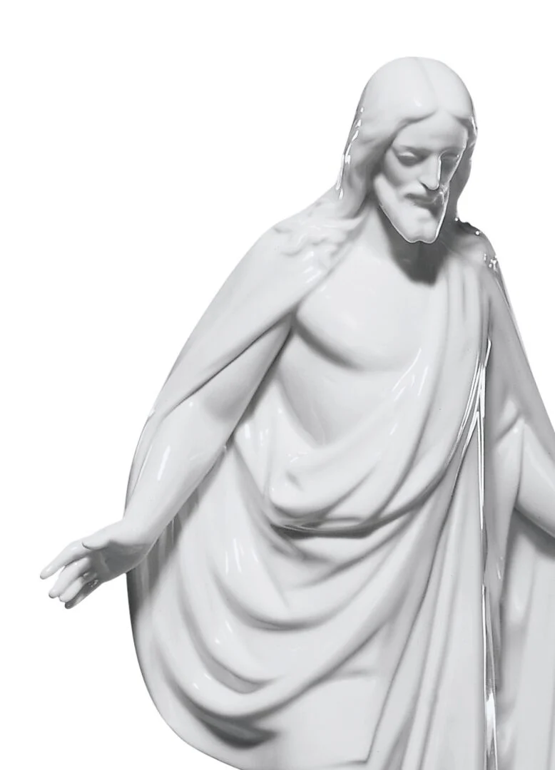 White glossy porcelain figurine of Christ. Jesus The Son of God extends his arms towards all humanity. Buy it now at Lladró Sydney, Australia.