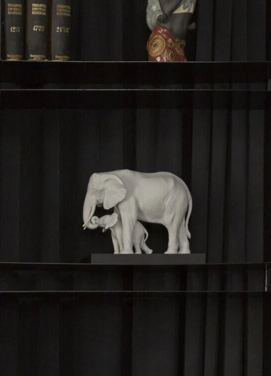 A gesture of maternal love in the most impressive of all the creatures. The mother elephant gently guides her calf in a gesture that's both tender and universal. A matt white porcelain piece of strong decorative impact that reveals the textural details of the artisans, perfect for any type of setting.