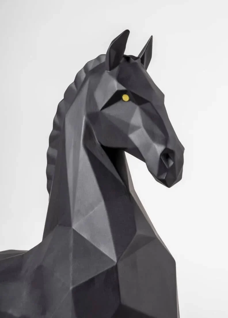 Matt black porcelain Origami Horse sculpture, inspired by Japanese origami, capturing movement and strength in geometry. Buy it now at Lladró Sydney, Australia.