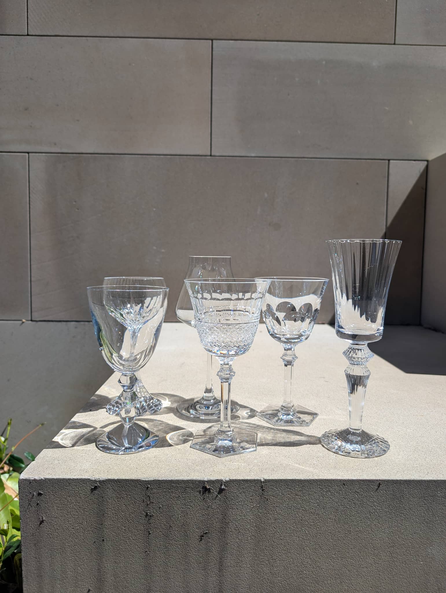 This set includes 6 glasses: Harcourt Eve, Diamant Eve, Chateau Baccarat, Massena, Vega and Mille Nuits.